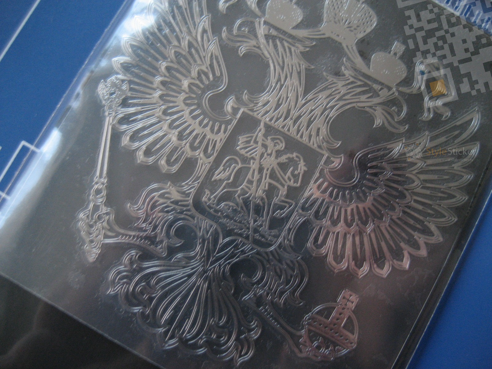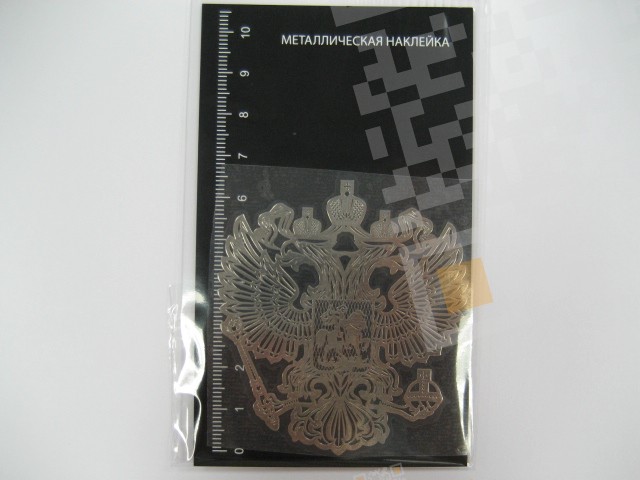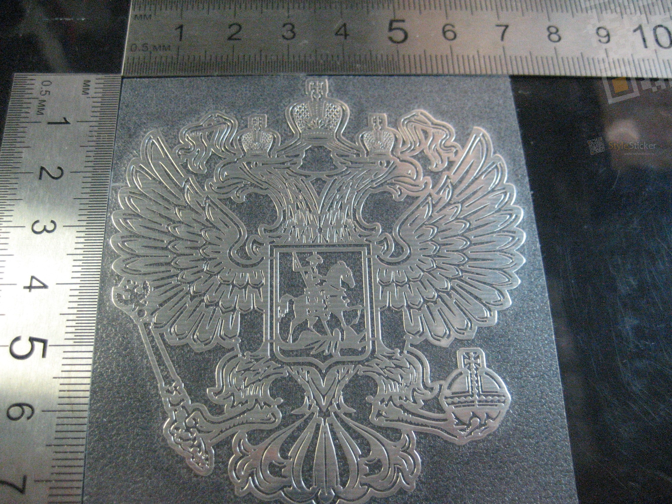 Металлическая наклейка на машину ГЕРБ РОССИИ. Контурная серебряная наклейка из тонкого металла, детализированная, очень красивая и эффектная, можно наклеить на автомобиль, мотоцикл или любой подходящий предмет.