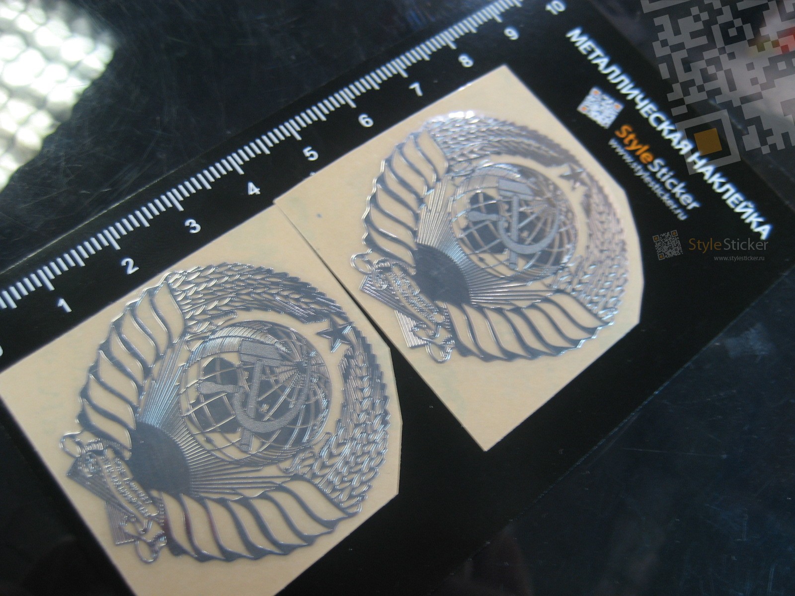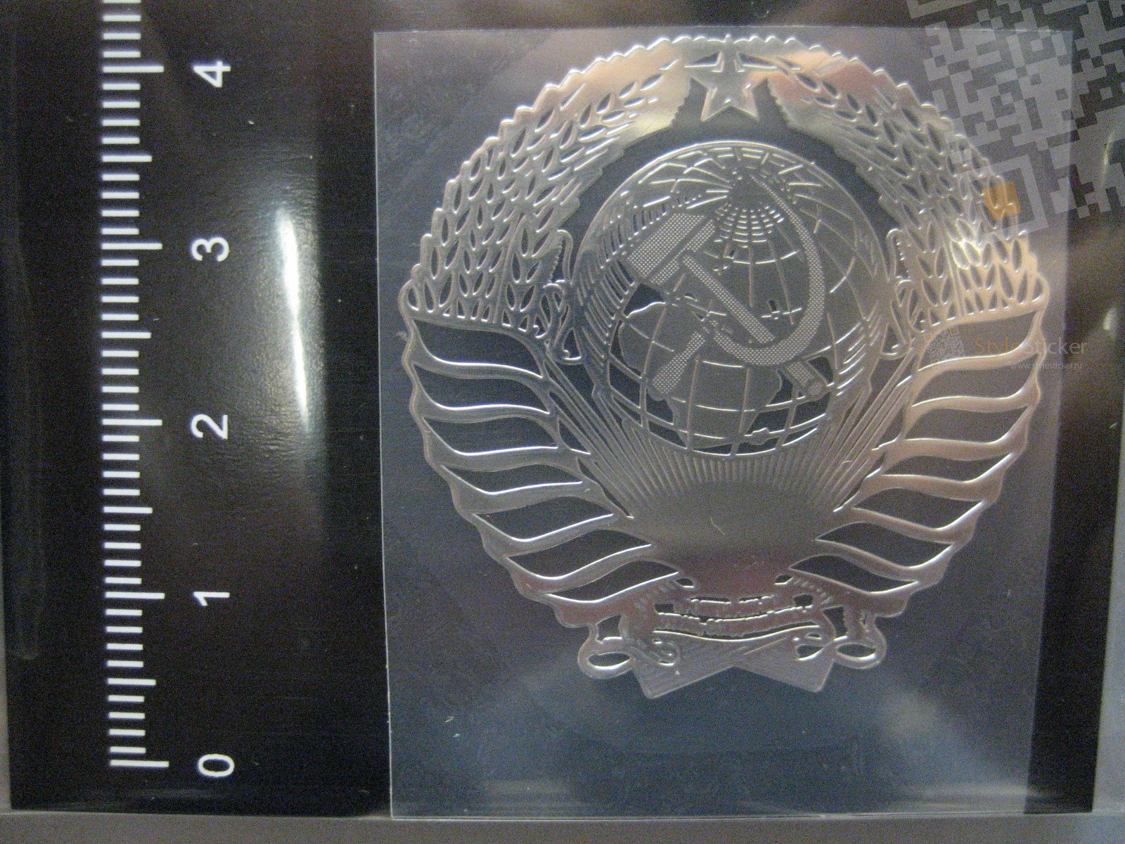 Металлическая никелевая наклейка Герб СССР Наклейка подходит на автомобиль, а также телефон, ноутбук и другие прикольные штуки.