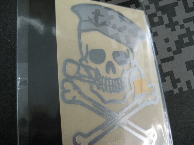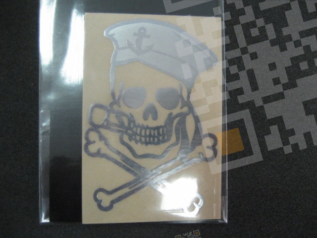 Металлическая наклейка на машину Веселый Роджер удачным применением будет кузов автомобиля, очень эффектная наклейки, значительно интересней смотрится чем виниловая наклейка хоккеист.