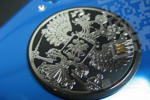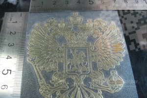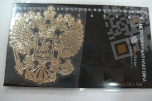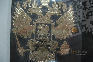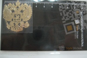 Герб России Металлическая никелевая наклейка золотого цвета (артикул 3)